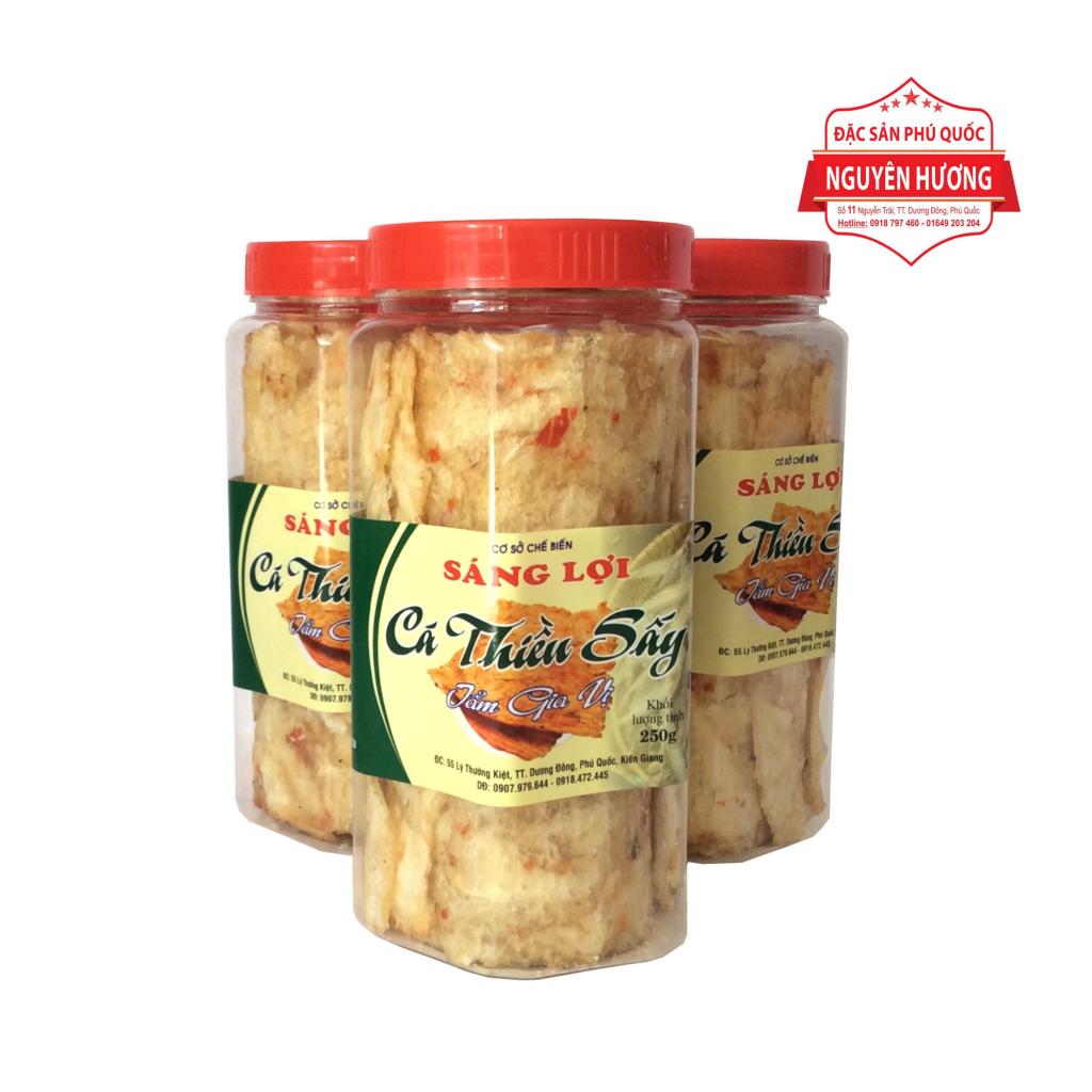 Khô Cá Thiều là một đặc sản của Phú Quốc tạo được nhiều ấn tượng nhất. Khô Cá Thiều khi nướng lên sẽ có mùi thơm rất đặc trưng của nó, lan tỏa và gây hấp dẫn cho người xung quanh, khó lòng mà cưỡng lại. Ai đã từng đến du lịch Phú Quốc và nếm qua hương vị Khô Cá Thiều thì sẽ lưu luyến mã. Từ cá tươi để chuyển thành con khô trải qua quá trình nhiều công đoạn, kỹ thuật ướp phơi khéo léo để đạt chất lượng cao. Mỗi cơ sở làm Khô Cá Thiều đều có kỹ thuật ướp riêng của mình. Nhưng trong các phụ gia trộn cá nhất định phải có đường cát trắng, nước mắm hòn Phú Quốc, tiêu là cơ bản. Muốn có màu đỏ phải ướp thêm sirô đỏ. Khô Cá Thiều là món khoái khẩu phù hợp mọi lứa tuổi, mọi giới. Khô Cá Thiều chế biến để dùng ăn cơm, hay nhắm bia rượu đều rất ngon.